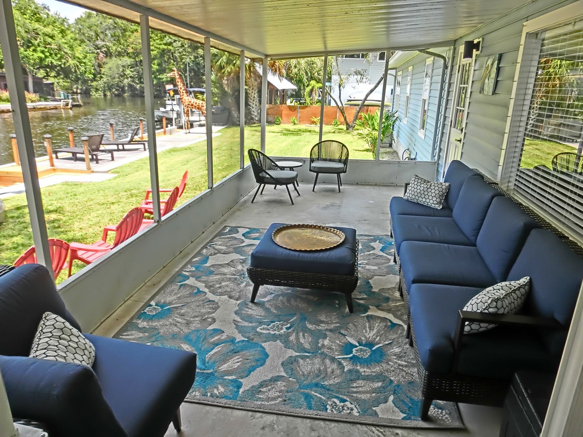 - Outdoor entertainment: Fire up the gas grill and savor a delicious barbecue while enjoying the tranquil riverside ambiance and breathtaking views. Plenty of room to enjoy the views from our screened-in 215-square-foot back patio.