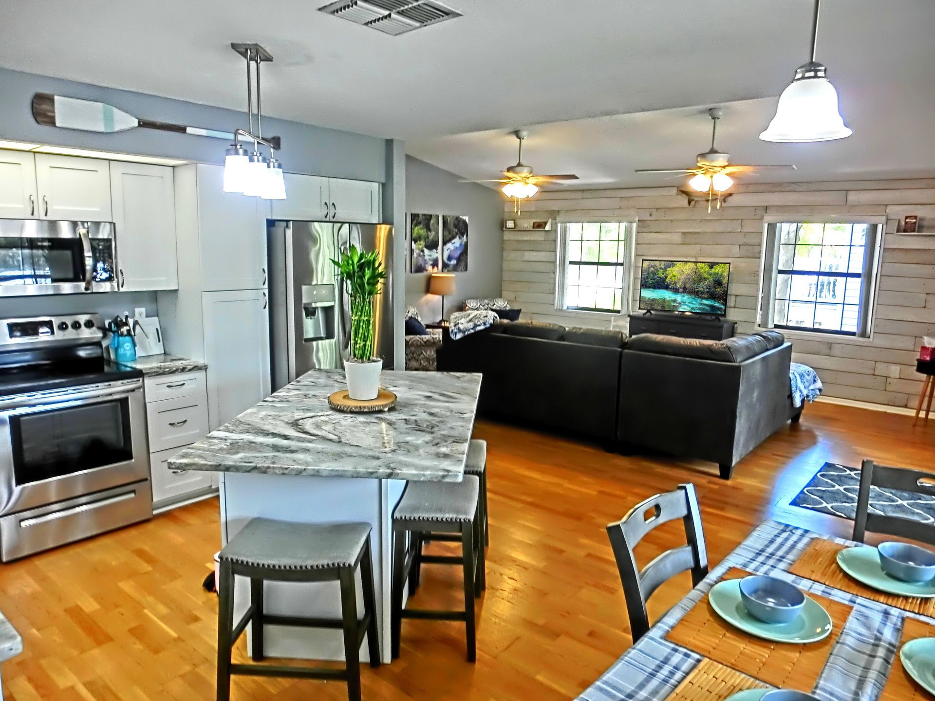 Welcome to our Paddlers Cove! Nestled just 12 houses away from the main river, this 2-bedroom, 2-bathroom home offers the perfect getaway for boaters, nature enthusiasts, and water lovers. Here are all the amazing features of our vacation rental: