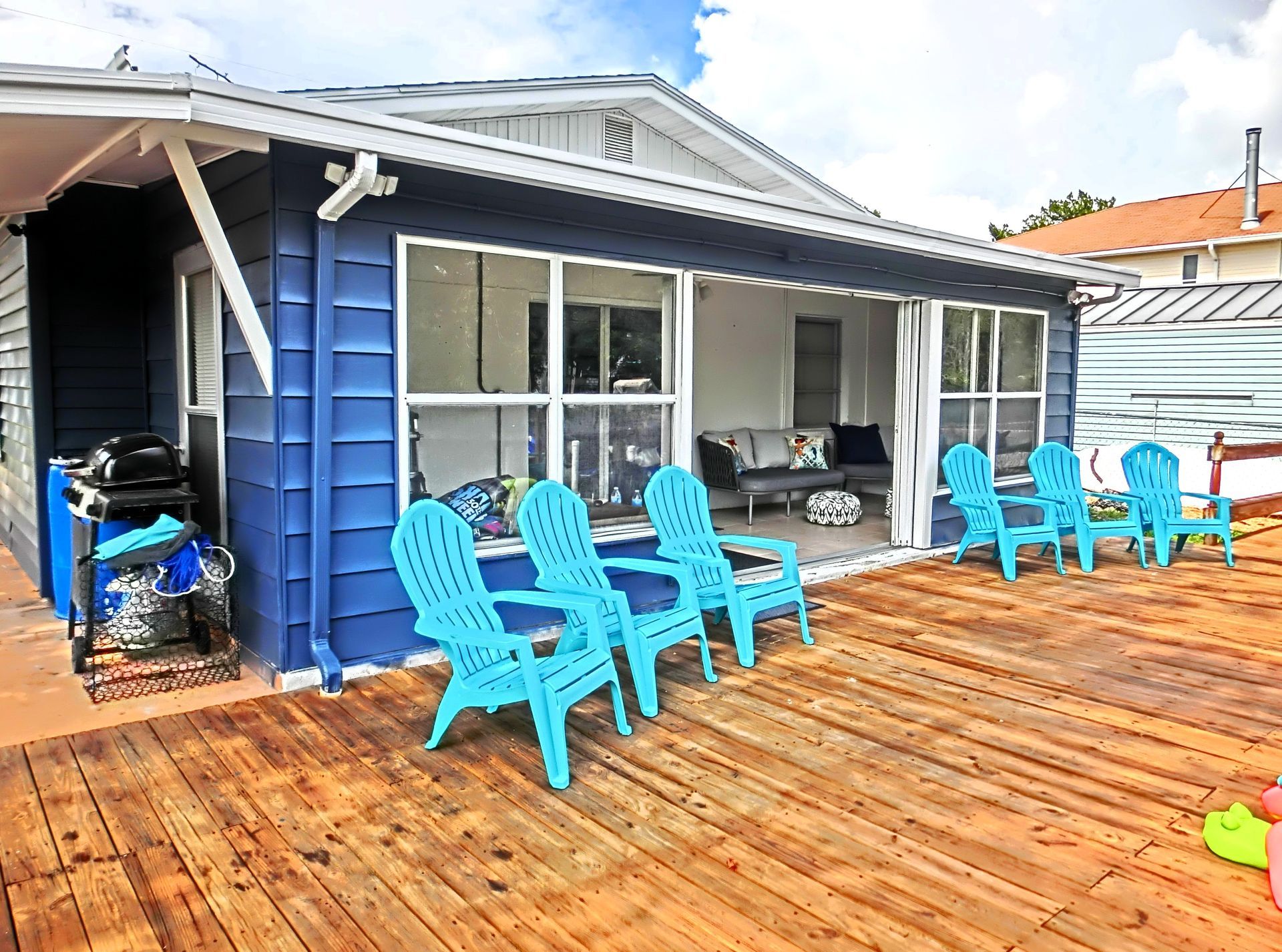Propane grill in the backyard available for use. Propane is available at the local Winn Dixie, should the bottle be empty.