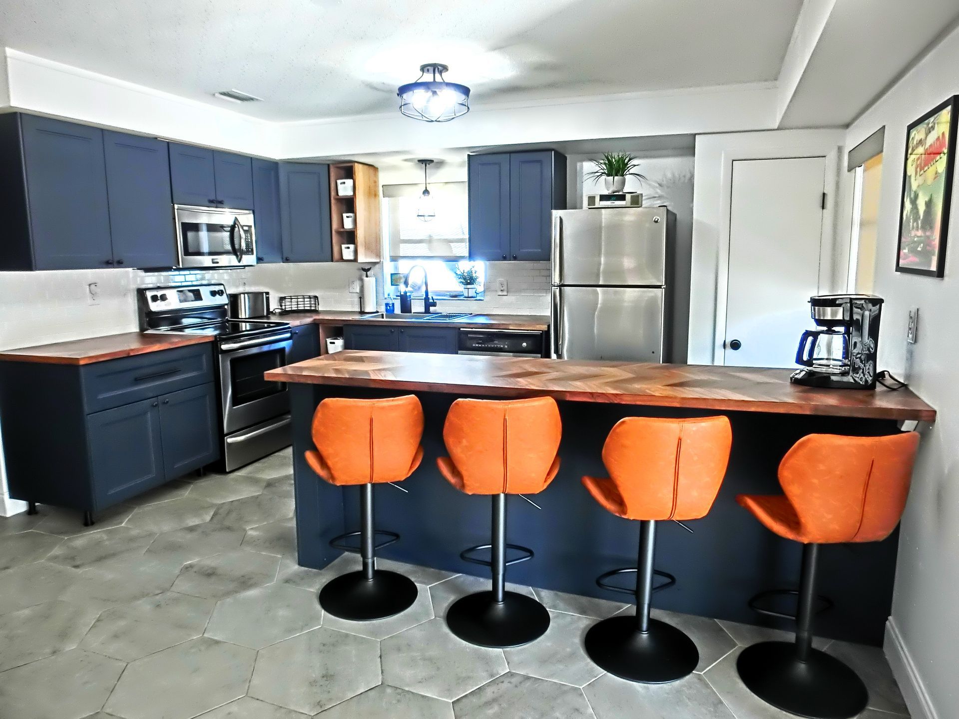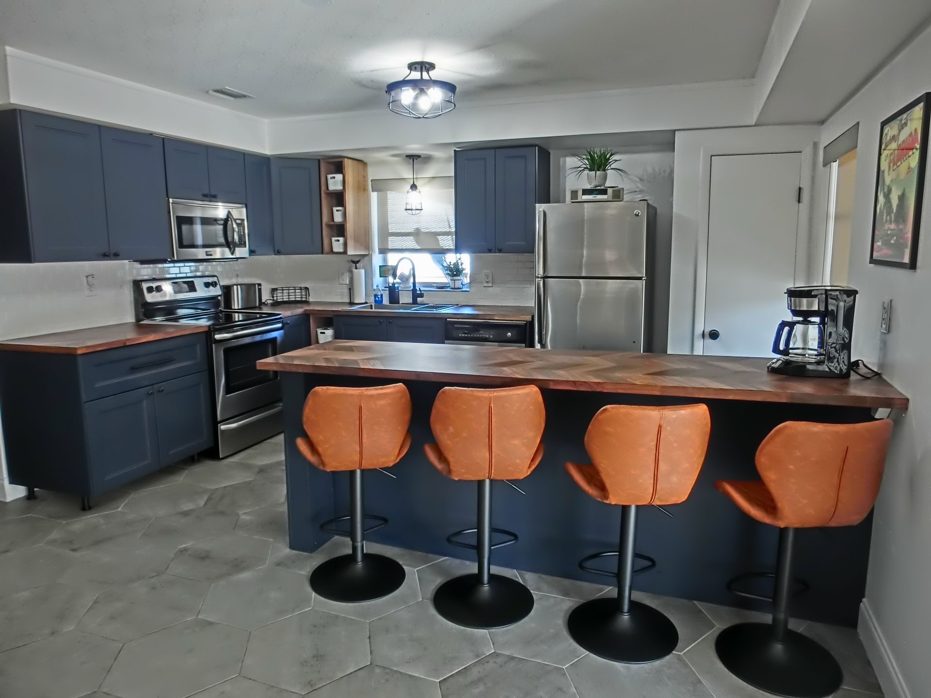 Special note- The kitchen is currently featuring an open shelving concept because the cabinet doors are on back order.